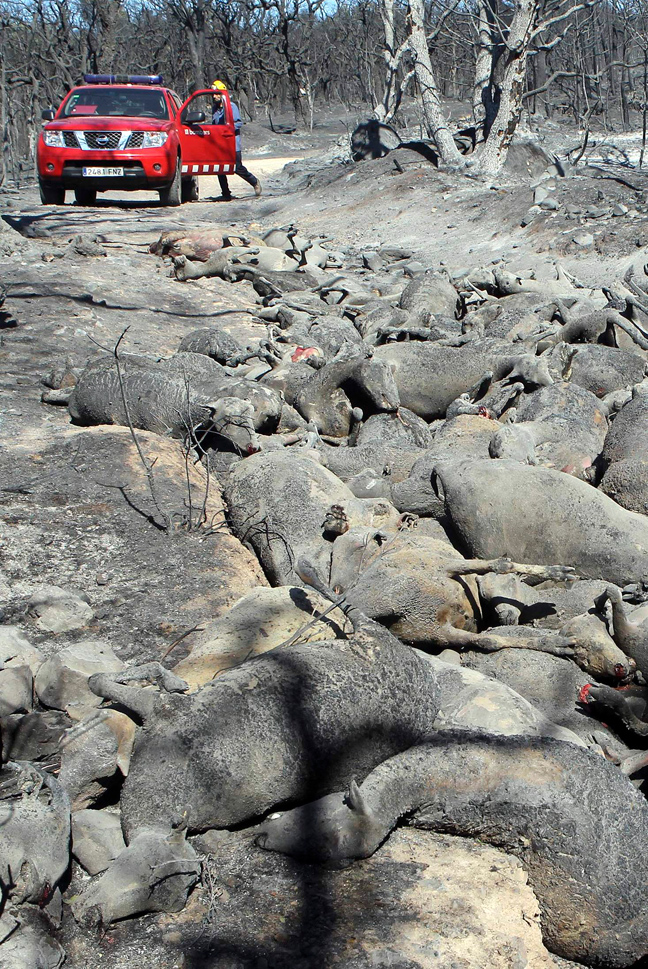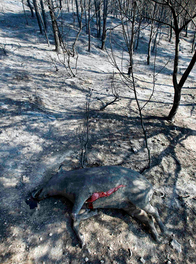 Στον τραγικό απολογισμό της καταστροφικής πυρκαγιάς δεν έχει ακόμα συμπεριληφθεί ο μεγάλος αριθμός των ζώων που ζούσαν στις περιοχές που έγιναν στάχτη και βρήκαν βασανιστικό θάνατο μέσα στις φλόγες.