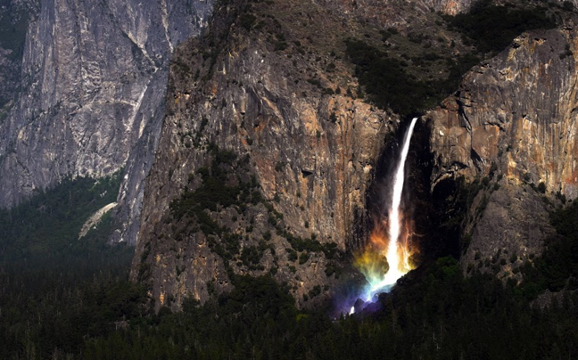 Τη σωστή στιγμή στο σωστό σημείο βρέθηκε ο φωτογράφος Justin Lee στο πάρκο Yosemite National Park στην Καλιφόρνια και αποτύπωσε το σχηματισμό ενός εντυπωσιακού «ουράνιου τόξου» στο σημείο όπου το νερό πέφτει στο έδαφος.