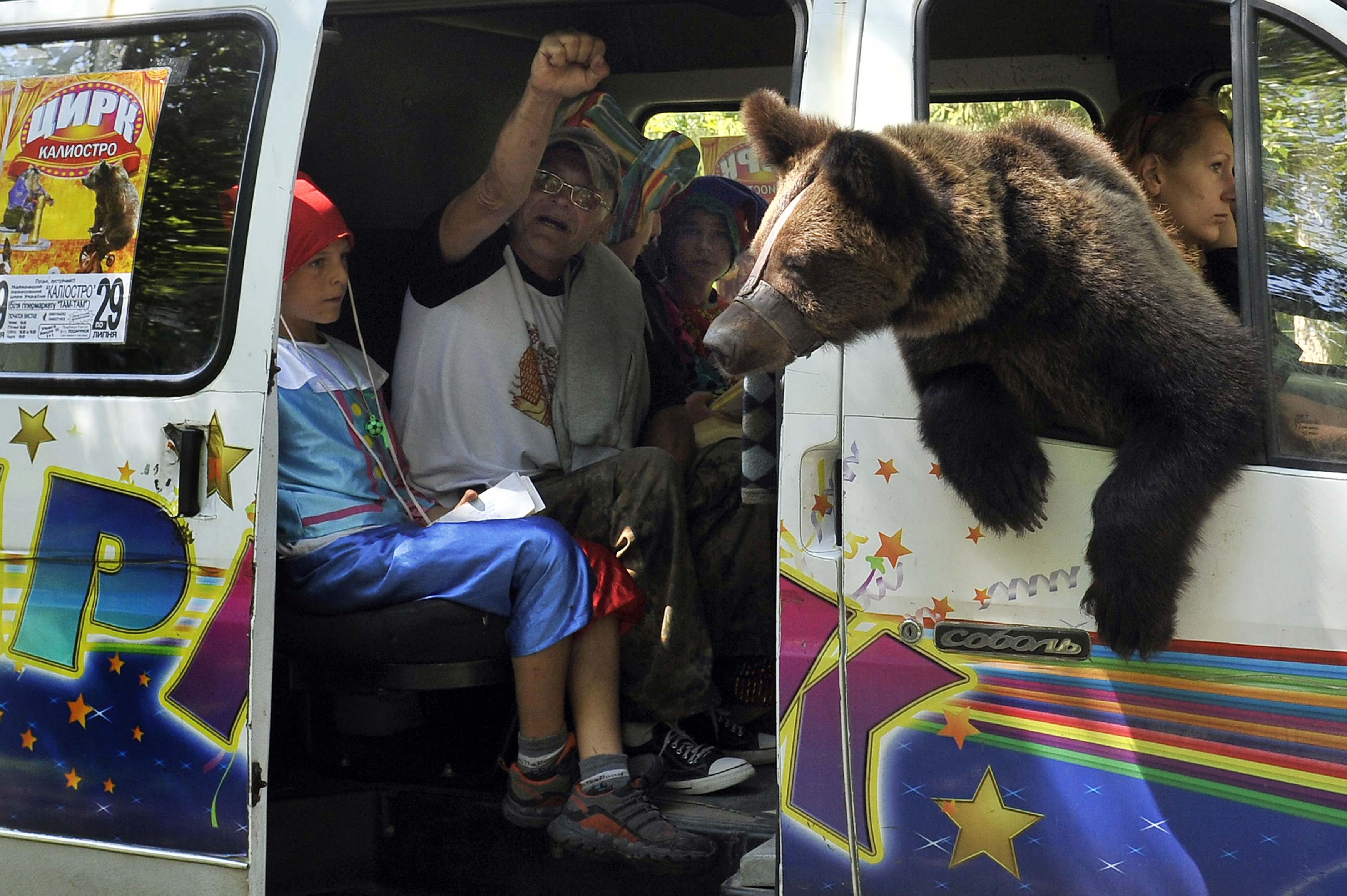 Ένα άτυχο αρκουδάκι δύο χρονών που παρουσιάστηκε στους δρόμους της πόλης Lutsk, ανατολικά του Κιέβου.