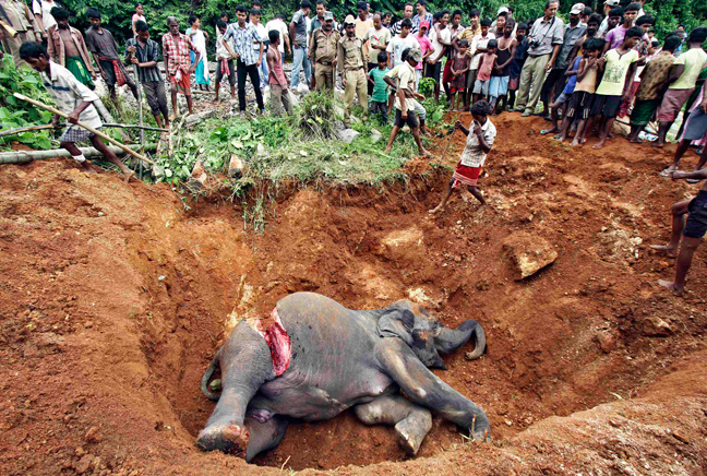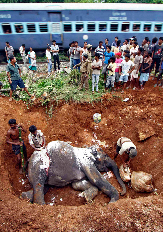 Μοιραίο ήταν το χτύπημα που δέχθηκε από τραίνο ένας θηλυκός ελέφαντας, την ώρα που διέσχιζε τις ράγες κοντά στο σταθμό Panbari στην Ινδία.