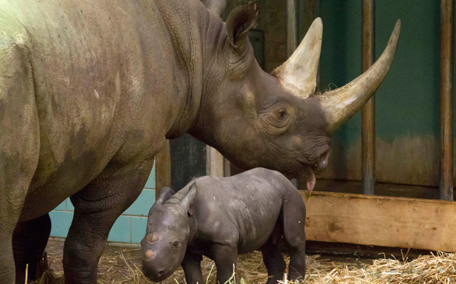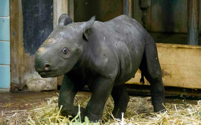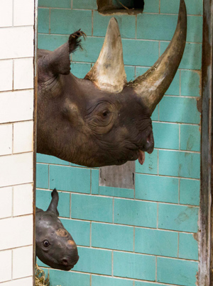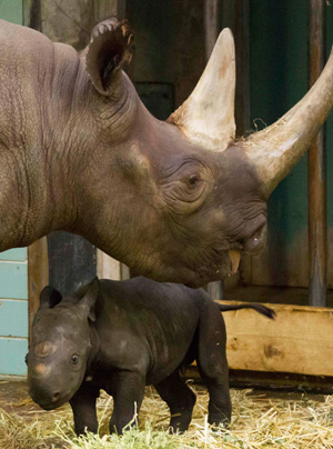 Στα φλας των δημοσιογράφων παρουσιάστηκε για πρώτη φορά σήμερα ο μικρός ρινόκερος Akili που γεννήθηκε μόλις πριν από τέσσερις ημέρες στο ζωολογικό κήπο του Βερολίνου.