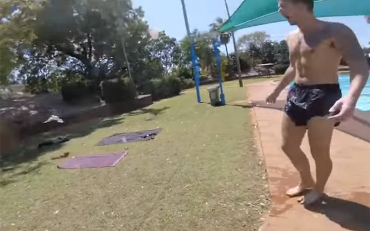 Ένας Αυστραλός έσωσε μια σαύρα από πνιγμό, όταν το ερπετό έπεσε στην πισίνα.