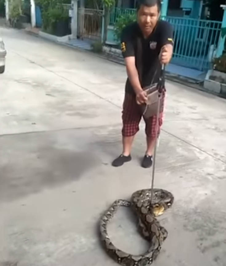 Ένας πύθωνας 3,5 μέτρων επιτέθηκε στο κατοικίδιο μιας οικογένειας στη Νονταμπουρί της Ταϊλάνδης, συνθλίβοντάς το με τη δύναμή του.