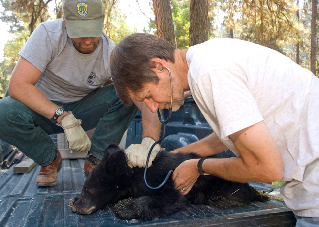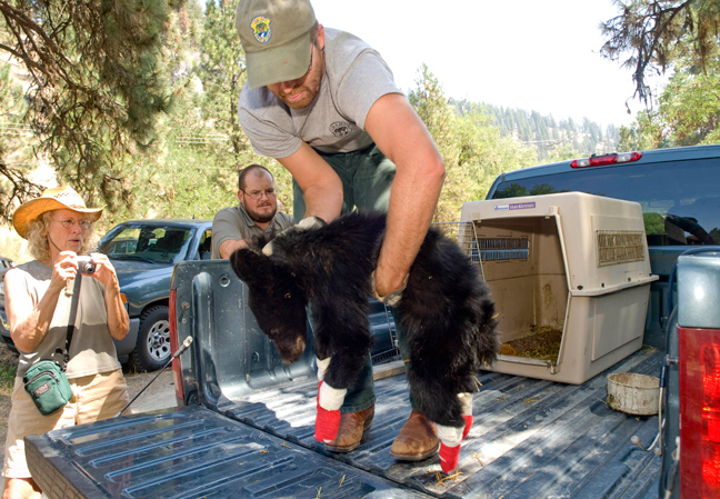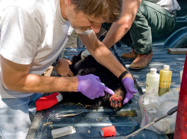 Με τη φροντίδα των κτηνιάτρων στο Garden Valley Ranger Station ο μικρός ανακουφίστηκε από τον πόνοά θα χρειαστεί θεραπεία επί μακρόν για να επιβιώσει.