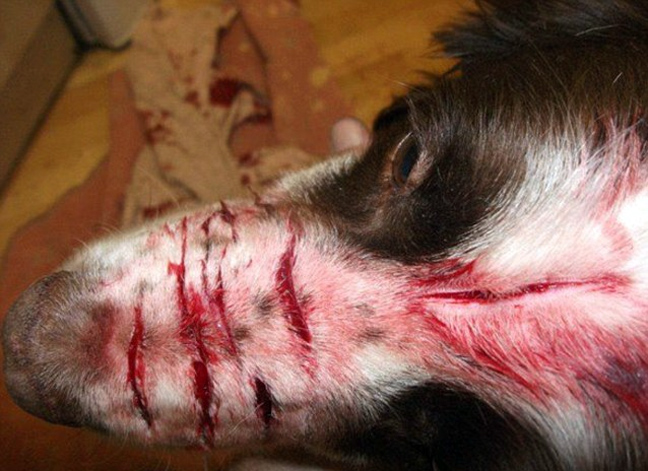 Η σοκαριστική εικόνα του Stig, του ενός από τα δύο springer spaniel, με το αίμα να τρέχει από τα τραύματά του στο κεφάλι και τη μύτη του και το βλέμμα του άδειο, αποτυπώνει την έκταση της επίθεσης της Edmonds.