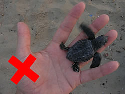 Δυστυχώς σε αυτές τις περιπτώσεις, που συμβαίνουν συχνά στα τέλη Ιουλίου και τον Αύγουστο όταν ο αριθμός επισκεπτών στις παραλίες είναι μεγάλος, πολλοί λουόμενοι δεν γνωρίζουν τι χρειάζεται να κάνουν ή να αποφύγουν ώστε τα χελωνάκια να φτάσουν με ασφάλεια στην θάλασσα. Έτσι συχνά μαθαίνουμε για περιστατικά όπου χελωνάκια δεν κατευθύνθηκαν προς την θάλασσα γιατί στην διαδρομή τους υπήρχαν εμπόδια και άνθρωποι, γιατί υπήρχαν φώτα που τα μπέρδεψαν, ή γιατί τα έπιασαν παιδιά για να παίξουν μαζί τους.