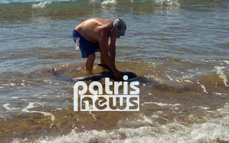 Ένα δελφίνι που βγήκε στα ρηχά της παραλίας της Σπιάτζας (στη Σαρακίνα), ήταν η αιτία για να κινητοποιηθούν πολίτες και φορείς για να του παράσχουν βοήθεια. Του ανταποκριτή μας από το patrisnews.com στην Ηλεία Το μήκους περίπου 1,5 μέτρου και βάρους 20-25 κιλών θηλαστικό (πρόκειται είτε για ζωνοδέλφινο είτε για νεογέννητο σταχτοδέλφινο) έγινε αντιληπτό από τον κ. Διονύσιο Δρακούλη λίγο μετά τις 11 το πρωί της Τετάρτης (10/10), χάρη στην ευαισθητοποίηση του οποίου ξεκίνησε η κινητοποίηση. Μαζί με άλλους λουόμενους προσπάθησαν να το οδηγήσουν στα βαθιά, εκείνο όμως επέστρεφε και πάλι προς την παραλία, παρά τις πολύωρες προσπάθειες λουόμενων και φιλόζωων κατοίκων της περιοχής, που είχαν σπεύσει και εκείνοι στο σημείο…