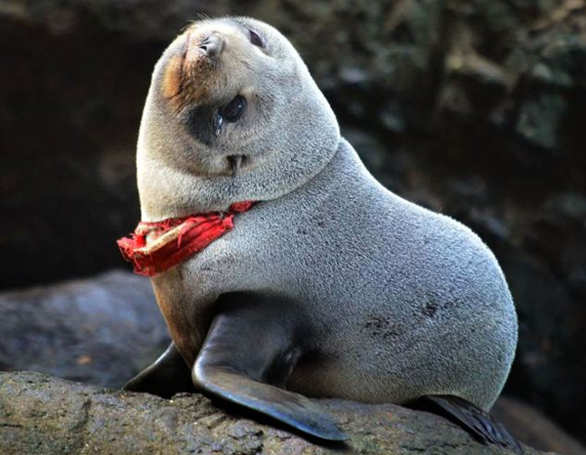 Τυχερή μέσα στην ατυχία της ήταν μια μικρή φώκια, η οποία εντοπίστηκε στις νότιες ακτές της Νέας Ζηλανδίας με ένα… g-string στο λαιμό!