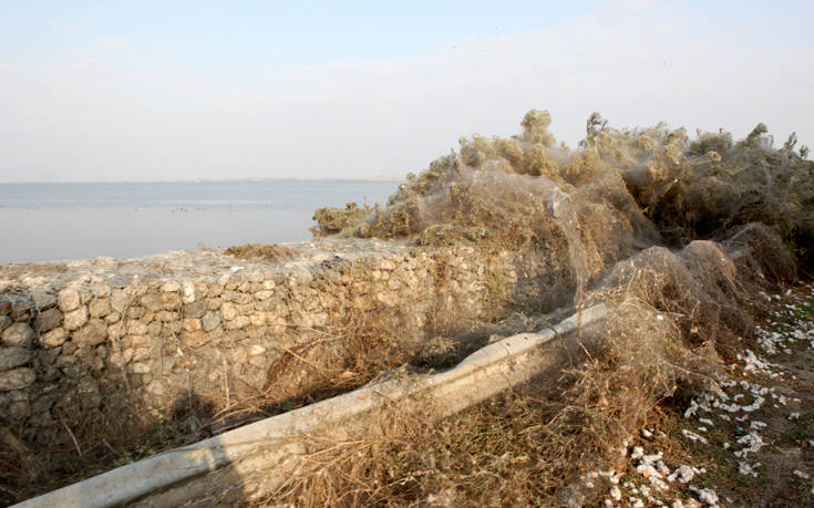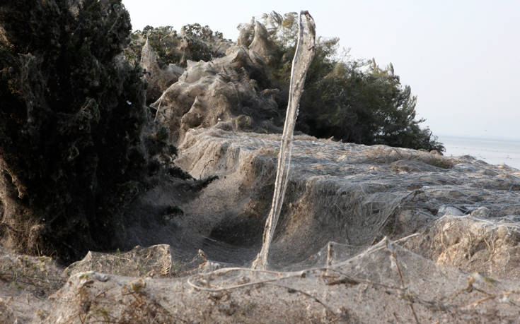 Η λιμνοθάλασσα της Βιστωνίδας στο Πόρτο Λάγος έχει καλυφθεί από ένα πέπλο από ιστούς αραχνών, το οποίο δημιουργεί ένα απόκοσμο θέαμα στον υδροβιότοπο.