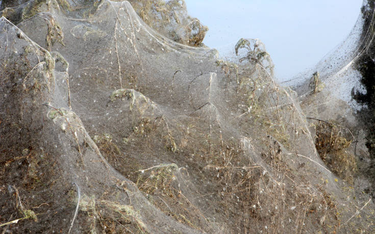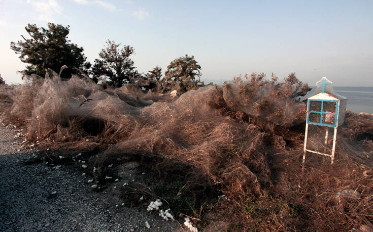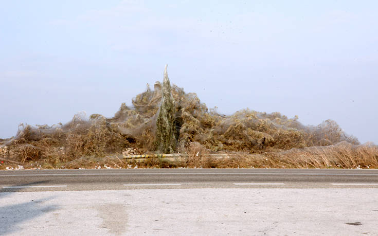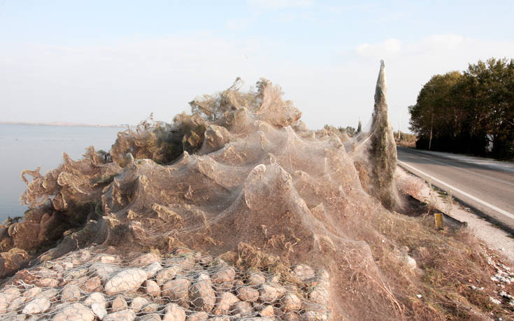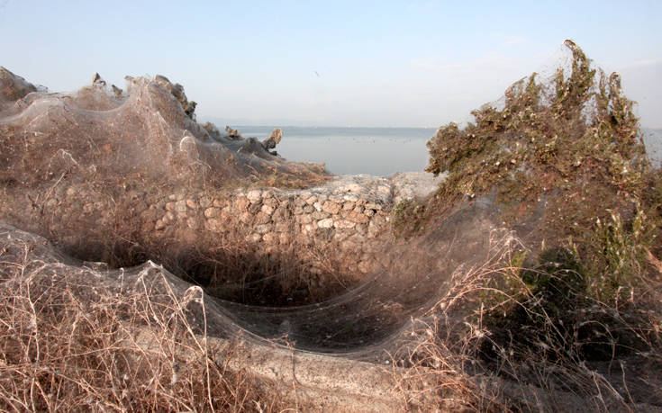 Το θέαμα εντυπωσιάζει διερχόμενους και επισκέπτες. Το πέπλο αράχνης «σκεπάζει» φυτά, θάμνους, φράχτη ακόμα και κάποια εκκλησάκια που υπάρχουν δίπλα στη λίμνη Βιστωνίδα.