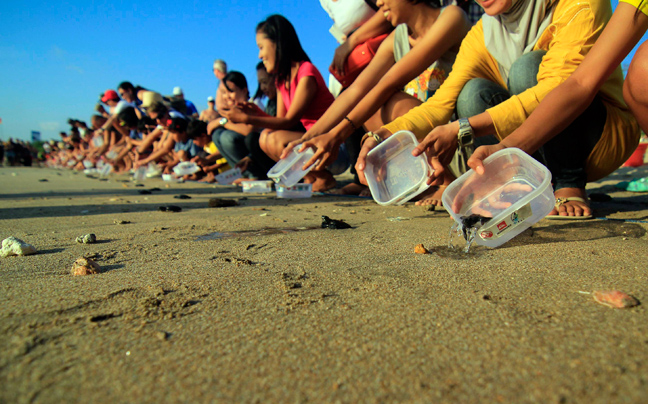 Τα χελωνάκια της σεζόν αφέθηκαν στην παραλία Kuta στο Μπαλί, σε ειδική εκδήλωση με τη συμμετοχή εθελοντών που συμμετέχουν στην προστασία του είδους. Σύμφωνα με το καταφύγιο, περισσότερα από 20.000 αυγά επανεγκαταστάθηκαν με ασφάλεια στο χώρο του από το 2002, εκ των οποίων το 80% οδήγησε σε υγιή χελωνάκια που έφτασαν με επιτυχία στον ωκεανό.