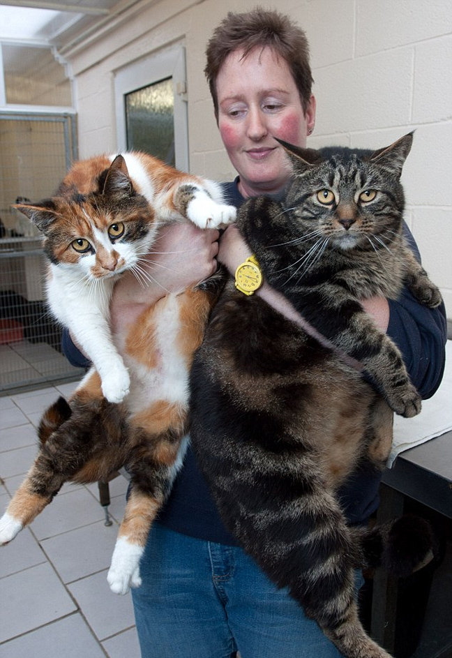 Η οργάνωση RSPCA εκτιμά πως οι γάτες- που είναι ηλικίας περίπου 18 μηνών η μία και τριών ετών η άλλη- επέζησαν χάρη στον όγκο τους και προφανώς ήταν ακόμα πιο παχύσαρκες πριν ανακαλυφθούν.
