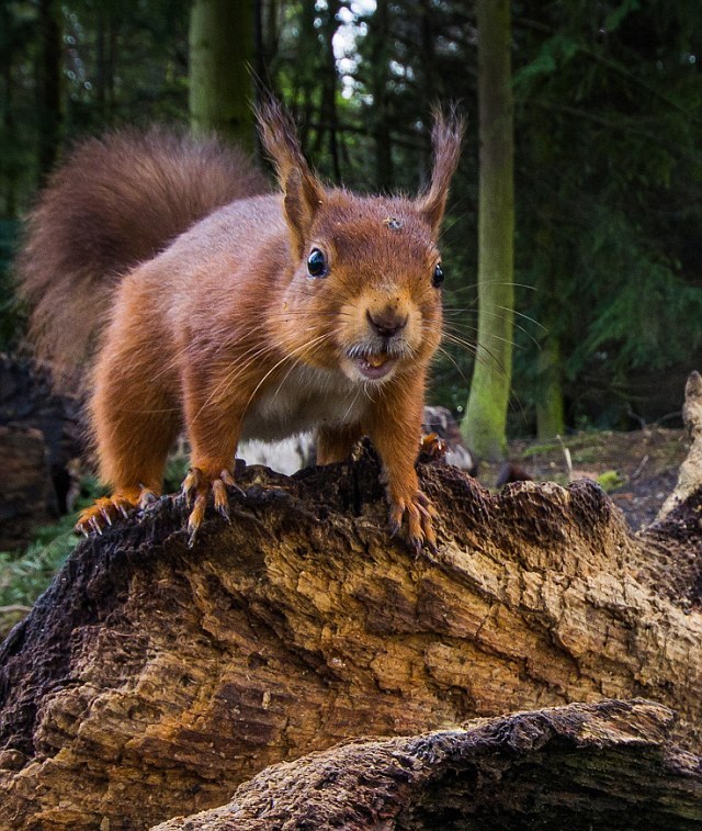 Με τα αυτιά του τεντωμένα και τα μάτια του ορθάνοιχτα ο μικρός σκίουρος στις παρακάτω φωτογραφίες είναι σαν να περιμένει να τον φωτογραφίσουν!