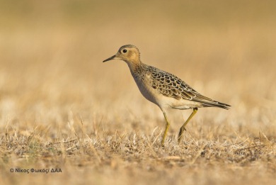 Τον Τρυγγίτη Tryngites subruficollis (φωτογραφία από την Ομάδα Παρακολούθησης Πανίδας της Υπηρεσίας Περιβάλλοντος του Αερολιμένα), ο οποίος είναι ένα σχετικά μικρό παρυδάτιο πουλί που αναπαράγεται στη Βόρεια Αμερική.