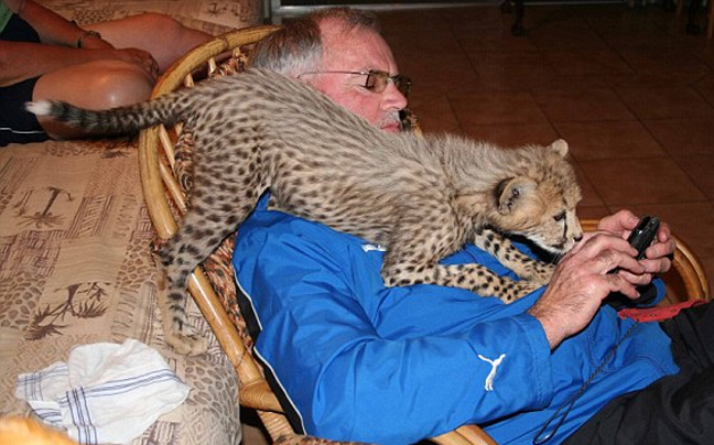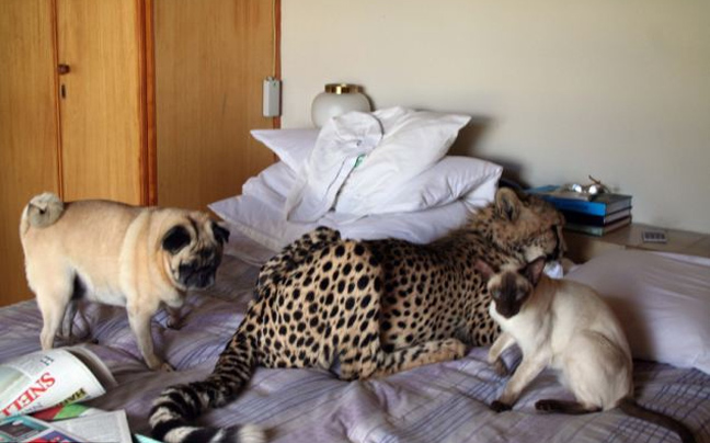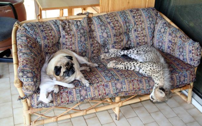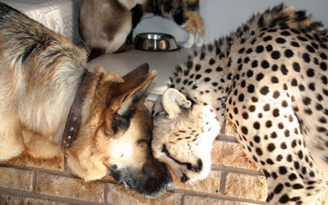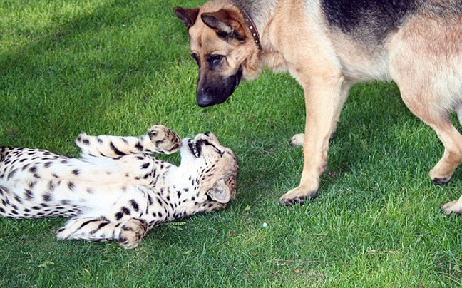 Και δε σταματά εκεί. Παίζει, τρώει και κοιμάται μαζί με το άλλο κατοικίδιο της οικογένειας, ένα γερμανικό ποιμενικό, τον Franky.