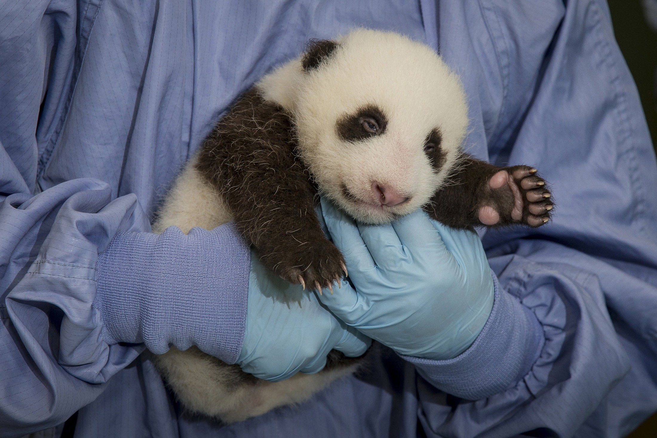 Είναι πλέον 45 ημερών και το μικρό πάντα της φωτογραφίας, που γεννήθηκε στο ζωολογικό κήπο του Σαν Ντιέγκο, αρχίζει για πρώτη φορά να βλέπει αχνά τον κόσμο καθώς ανοίγουν σιγά σιγά τα μάτια του.