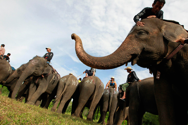 Οι φωτογραφίες που ακολουθούν είναι από ελέφαντες στην Ταϊλάνδη, οι οποίοι προετοιμάζονται για το 11ο τουρνουά πόλο ελεφάντων στο θέρετρο Hua-Hin νότια της Μπανγκόκ.