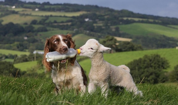 Κάθε ημέρα, πρωί, μεσημέρι και βράδι, η Τζες παίρνει από το αφεντικό της ένα μπουκάλι με γάλα, διασχίζει τη φάρμα και… ταΐζει τα ορφανά αρνάκια!