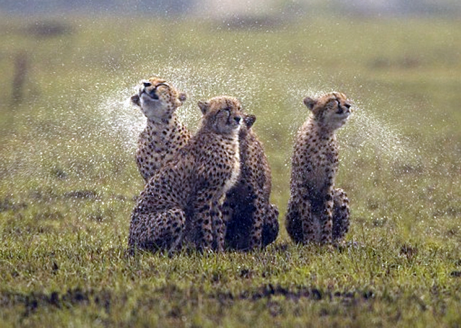 Σε μικρή απόσταση μία άλλη ομάδα μεγαλύτερων τσιτάχ άδραξε την ευκαιρία για ένα ευχάριστο… ντους.