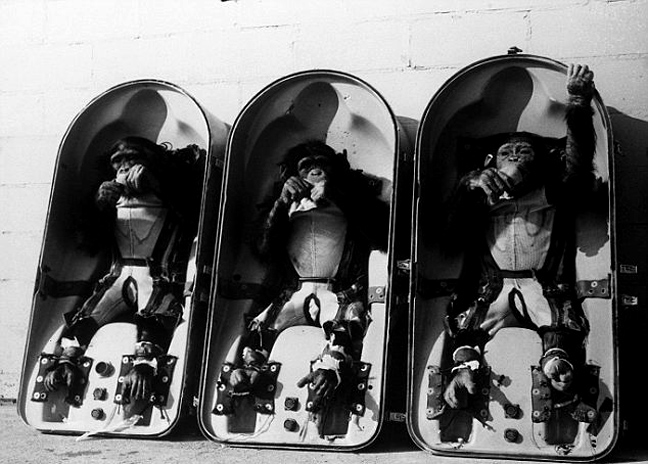 Οι χιμπαντζήδες περνούσαν πολλές δοκιμασίες σε μηχανήματα που εξέταζαν τις δυνατότητές τους σε σχέση με τη βαρύτητα, την ταχύτητα και τη θερμότητα.