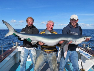 Μαζί με δύο φίλους του κατάφεραν μετά από αρκετή προσπάθεια να ανεβάσουν στο σκάφος τους τον 112,5 κιλών καρχαρία, κοντά στις ακτές Penzance της Κορνουάλης.
