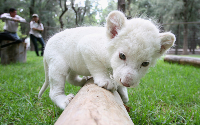 Ο μικρός της φωτογραφίας μόλις έκλεισε ένα μήνα ζωής στο ζωολογικό κήπο Leon στο Μεξικό. Το λευκό λιονταράκι γεννήθηκε στις 14 Σεπτεμβρίου και χθες παρουσιάστηκε για πρώτη φορά στους δημοσιογράφους.