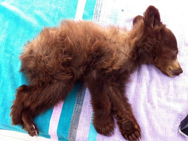 Εκτιμάται πως η αρκουδίτσα είναι τριών μηνών και είχε βάρος μόλις 4,5 κιλά όταν βρέθηκε. Οι ειδικοί αποφάνθηκαν πως εγκαταλείφθηκε από τη μητέρα της και πως θα είχε πεθάνει μόνη της στη φύση.