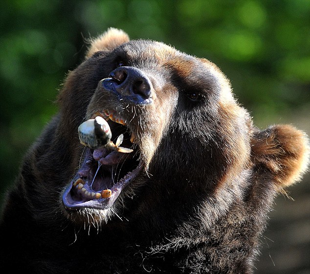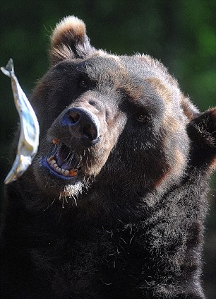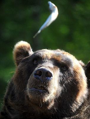 Μάλλον τα σκουμπριά αρέσουν πολύ στις αρκούδες, αν κρίνει κανείς από τις φωτογραφίες που ακολουθούν. Η εικονιζόμενη αρκούδα δεν άφηνε τη «λιχουδιά» από τα μάτια της και με επιδεξιότητα άνοιγε το στόμα για να υποδεχθεί το γευστικό γεύμα.