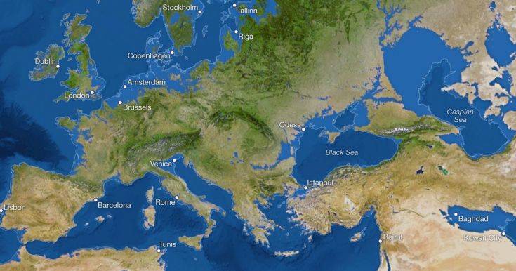Στην Ευρώπη, πόλεις όπως το Άμστερνταμ, οι Βρυξέλλες, η Ρίγα, το Λονδίνο και η Βενετία θα «πνιγούν», όπως και το μεγαλύτερο μέρος της Δανίας.