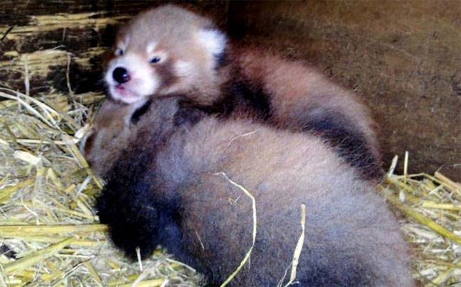 Είναι η πρώτη φορά που τα μικρά κόκκινα πάντα ξεμυτίζουν από τη φωλιά τους και αντικρίζουν τον έξω κόσμο. Το είδος τους είναι σπάνιο και μάλιστα τα συγκεκριμένα είναι τα πρώτα που γεννιούνται στο Cotswold Wildlife Park της Βρετανίας εδώ και μία δεκαετία.