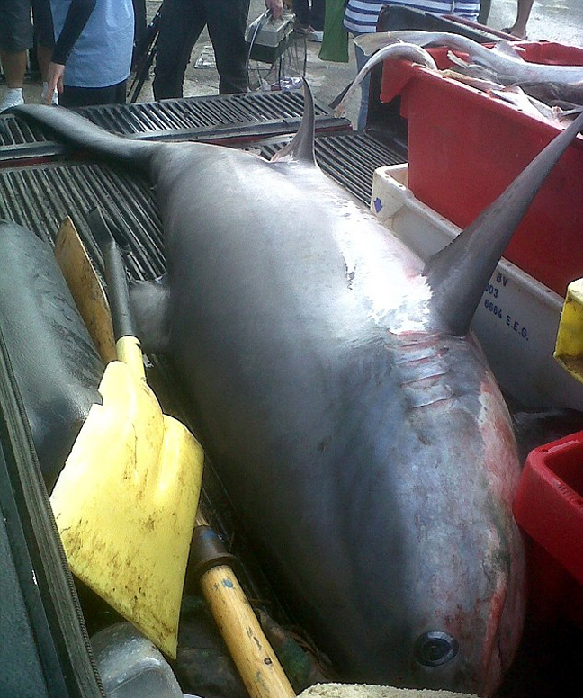 Ο καρχαρίας ήταν ήδη νεκρός όταν τον ανέβασαν στο σκάφος. Με μήκος 4,5 μέτρα θα μπορούσε να αποκεφαλίσει έναν άνθρωπο με μία κίνηση.