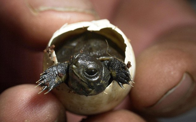 Κοιτάζοντας με περιέργεια έξω από το καβούκι της για πρώτη φορά τον κόσμο, η μικρή αυτή χελωνίτσα το μέγεθος της οποίας δεν ξεπερνά αυτό ενός κέρματος, γεννήθηκε χάρη σε ένα πρόγραμμα που σκοπό έχει τη διάσωση του είδους της.