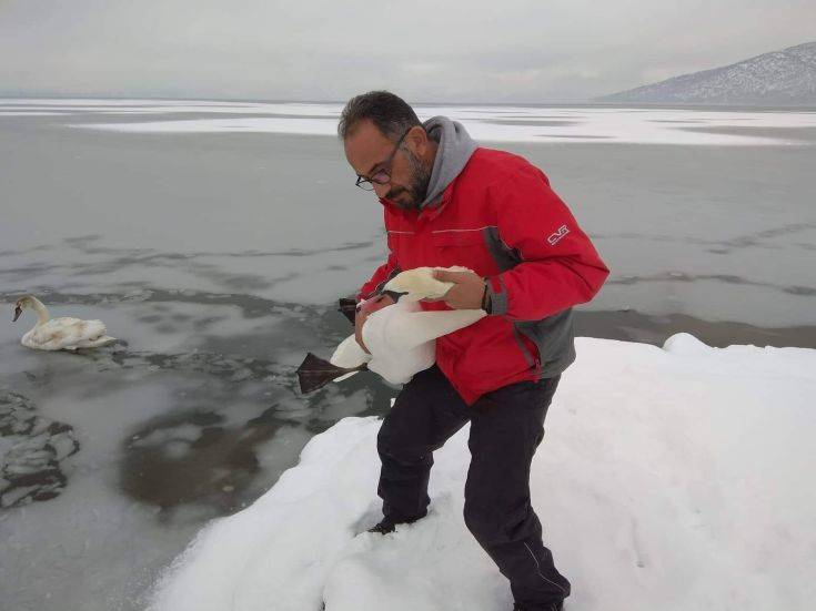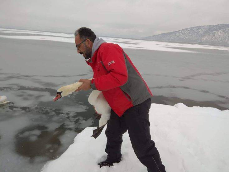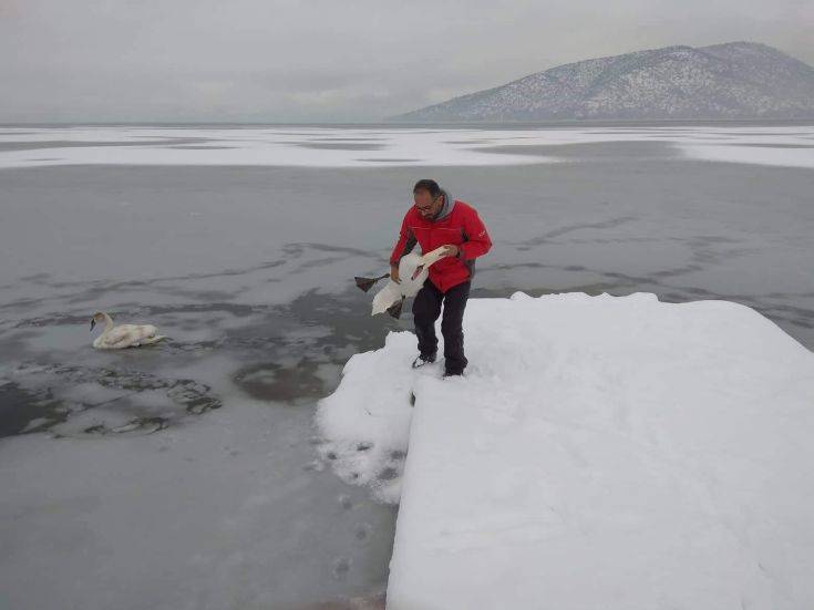 «Έχουμε σώσει πολλές φαλαρίδες, νερόκοτες και πάπιες που ήταν υποσιτισμένες ενώ κάποια πουλιά που είναι εμφανώς εξαντλημένα, τα κρατάμε μερικές μέρες στον σταθμό περίθαλψης» λέει ο κ. Παναγιωτόπουλος, ο οποίος είναι αποκαλυπτικός για τον τρόπο με τον οποίο οι εθελοντές προσεγγίζουν τα φτερωτά πλάσματα πάνω στην λίμνη. «Αν είναι κοντά στην ακτή, είναι σχετικά εύκολο αν και πάλι παραμένει επικίνδυνο. Αν είναι πιο μέσα στη λίμνη, χρησιμοποιούμε φουσκωτά στρώματα… θαλάσσης για να προστατευθούμε σε περίπτωση που σπάσει ο πάγος και βρεθούμε στο νερό».
