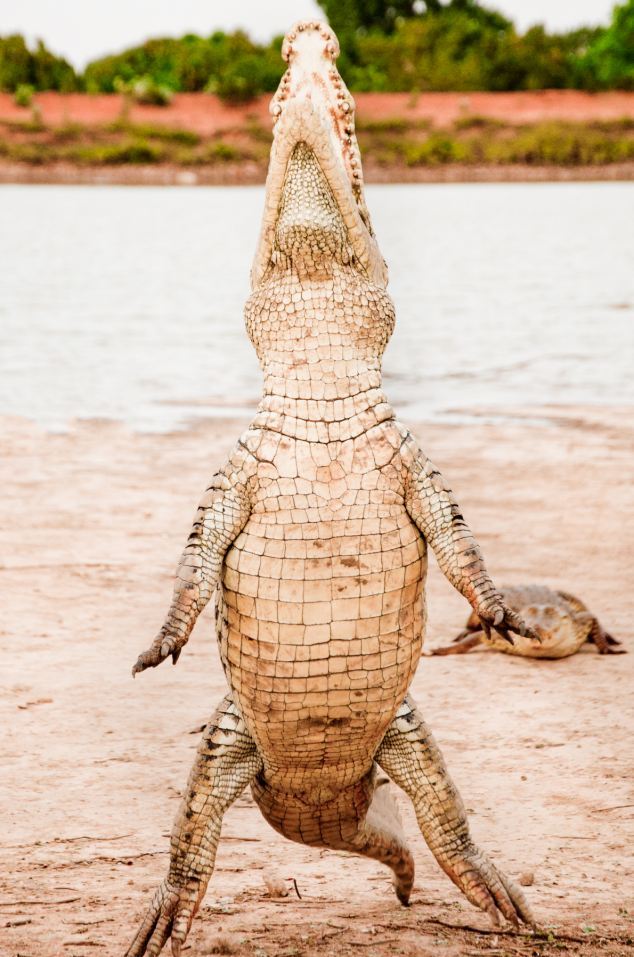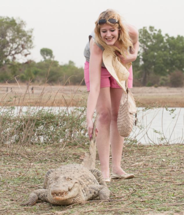 «Στεκόμασταν στην άκρη του νερού συνοδεία δύο ντόπιων με μόνο μέσο προστασίας ένα κομμάτι ξύλο. Υπήρχαν περίπου 15 κροκόδειλοι γύρω μας, οι οποίοι απολάμβαναν τις ακτίνες τους ήλιου χωρίς να υπάρχει προστατευτικός φράχτης. Μας προέτρεψαν να αγγίξουμε και τις ουρές τους» είπε.