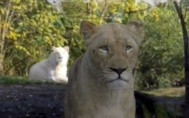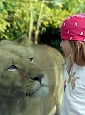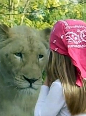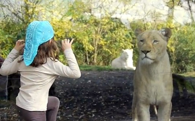 Όμως δεν υπήρχε κανένας κίνδυνος, καθώς ανάμεσα στην έκπληκτη πιτσιρίκα και το λιοντάρι, υπήρχε ένα χοντρό τζάμι.
