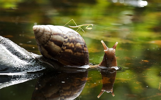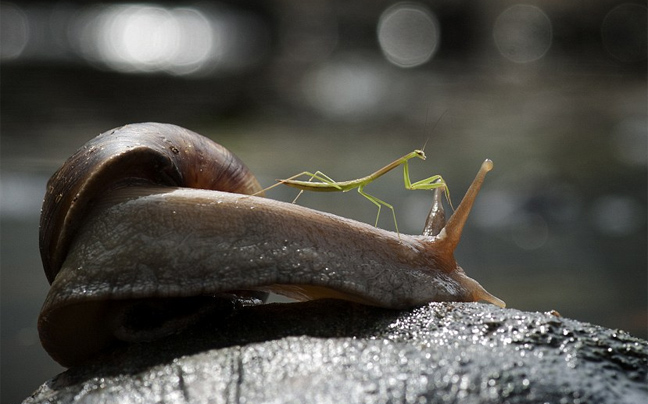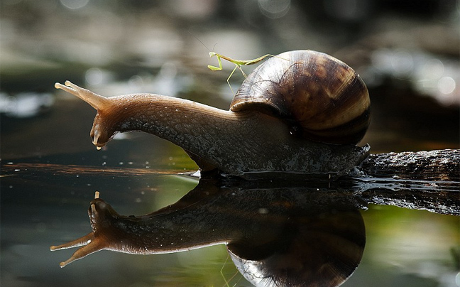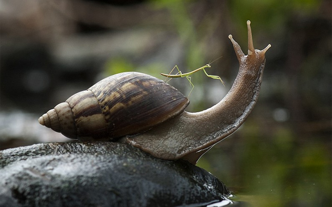 Αυτό όμως δεν φαίνεται να απασχολεί πολύ ένα μικρό έντομο που «καβάλησε» ένα σαλιγκάρι στο Βόρνεο στην Ινδονησία. Τις φωτογραφίες τράβηξε ο Nordin Seruyan που ειδικεύεται στη μακροφωτογραφία.