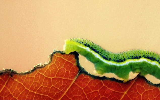 Σε αντίθεση όμως με τη διάσημη κάμπια του Carle, η οποία έτρωγε από σουηδικό τυρί μέχρι κερασόπιτα, η κάμπια στις παρακάτω φωτογραφίες είχε στόμα μόνο για… ένα τεράστιο –για το μέγεθός της- φύλλο.