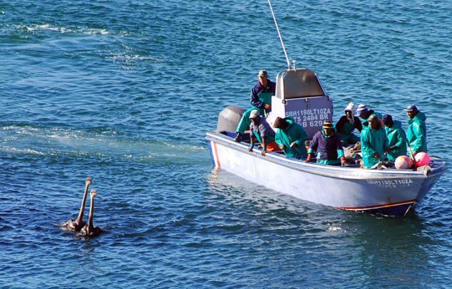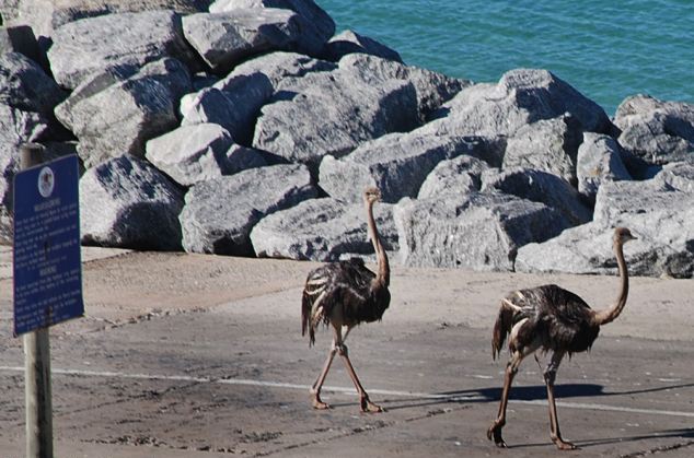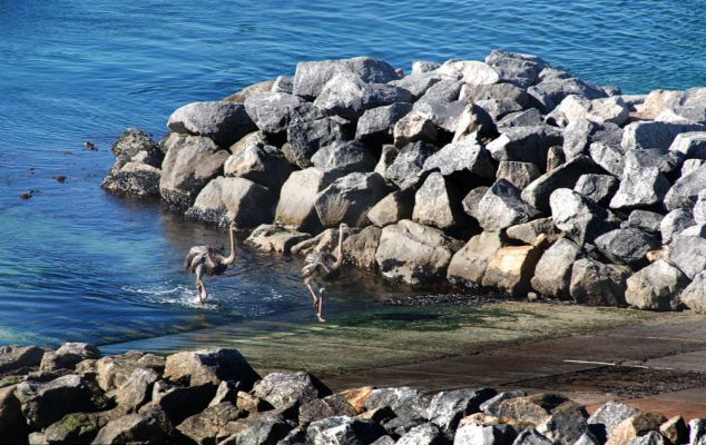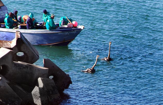 Μπορεί να μη μπορούν να πετάξουν, όμως μπορούν να κολυμπήσουν! Τα μεγάλα αυτά πτηνά ζυγίζουν πάνω από 150 κιλά, όμως αυτό δεν τα εμπόδισε να απολαύσουν τη βουτιά του στα νερά της περιοχής Yzerfontein στη Νότια Αφρική.