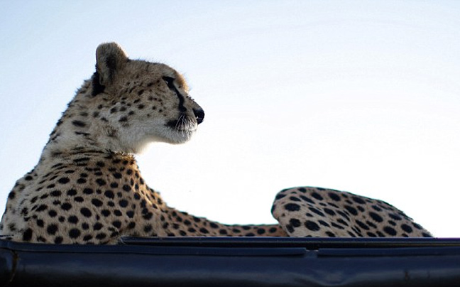 Ο 44χρονος γιατρός από την Τουρκία μόλις είδε το θηλυκό τσιτάχ να ανεβαίνει στην οροφή του τζιπ άρπαξε γρήγορα την φωτογραφική μηχανή του για να το φωτογραφίσει.