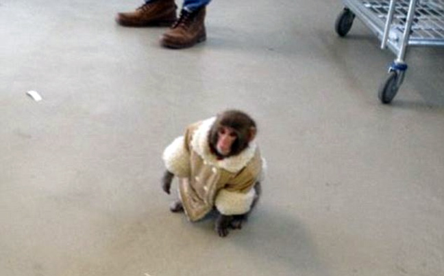 Η μαϊμού άρχισε να τριγυρνάει τρομαγμένη σε όλο το κατάστημα, μέχρι που τα αφεντικά της, που ψώνιζαν εκείνη την ώρα, έφτασαν στην πόρτα για να παραλάβουν το κατοικίδιό τους.