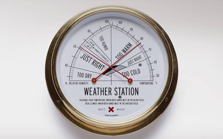 Αν θέλετε να ξέρετε κάθε στιγμή τι καιρός επικρατεί εκεί έξω αλλά είστε λάτρεις της παράδοσης, ο φορητός και εύχρηστος μετεωρολογικός σταθμός της Best Made είναι εδώ η απόλυτη επιλογή. Έστω και για ανοίξεις απλώς συζήτηση.