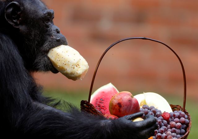 Μόλις αυτός αντιλήφθηκε την ύπαρξη του «δώρου», δεν περίμενε πολύ για να το πάρει και να φάει το εύγεστο περιεχόμενό του. Ο φωτογραφικός φακός κατέγραψε την αντίδραση του χιμπαντζή αφού βρήκε το καλάθι…