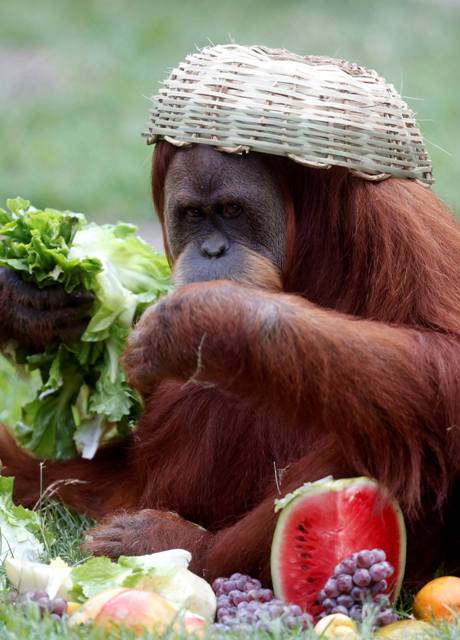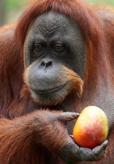 Ανάλογο χριστουγεννιάτικο καλάθι έλαβε και ένας ουρακοτάγκος του ίδιου ζωολογικού κήπου στη Βραζιλία. Το ζώο έδειξε γρήγορα την προτίμησή του στο περιεχόμενο, παρά στη συσκευασία… Ο φωτογράφος βρίσκονταν εκεί και απαθανάτισε το αστείο στιγμιότυπο…
