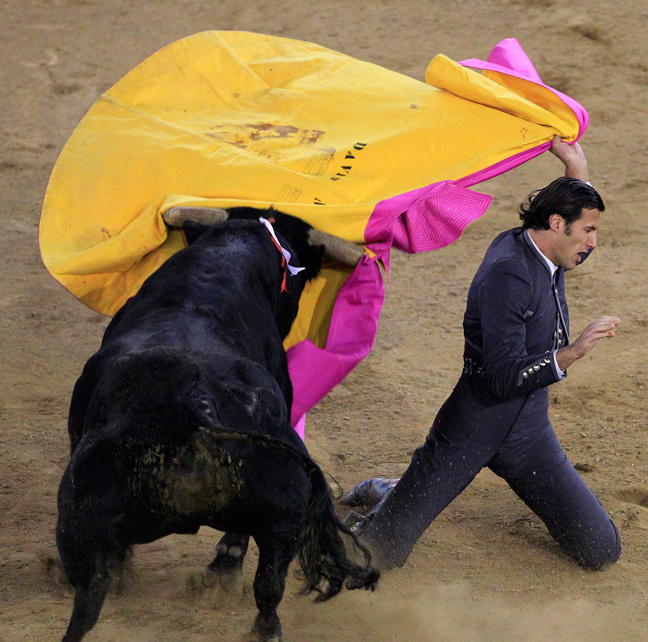 Όσοι βρέθηκαν στην αρένα Canaveralejo είδαν το συνηθισμένο θέαμα που παρακολουθεί κανείς σε ταυρομαχίες, με τους άντρες ντυμένους με κουστούμια να προσπαθούν να διεγείρουν τον ταύρο και στη συνέχεια να τον αποφύγουν.