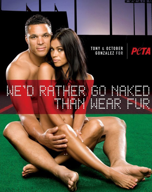 Ο Tony Gonzalez και η σύζυγος του ποζάρουν ενάντια στη χρήση γούνας.