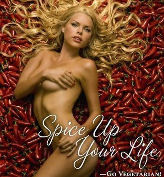 Η ηθοποιός Sophie Monk ξαπλώνει γυμνή πάνω σε πιπεριές προτρέποντας το θεατή να γίνει χορτοφάγος!