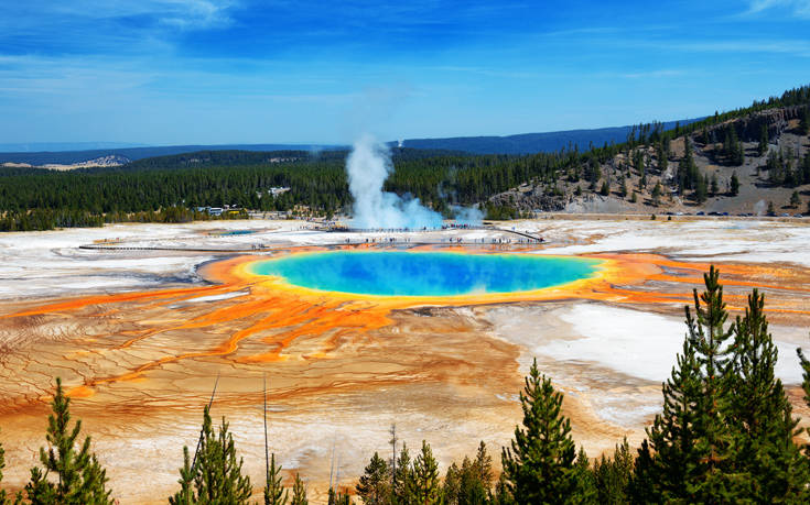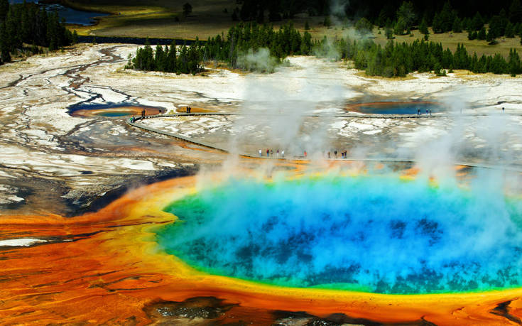 Μ εξωπραγματική ομορφιά και εντυπωσιακούς χρωματισμούς η Grand Prismatic Hot Spring είναι μια ιδιαίτερη θερμή πηγή στις Ηνωμένες Πολιτείες.