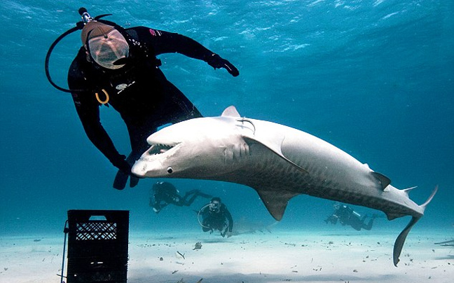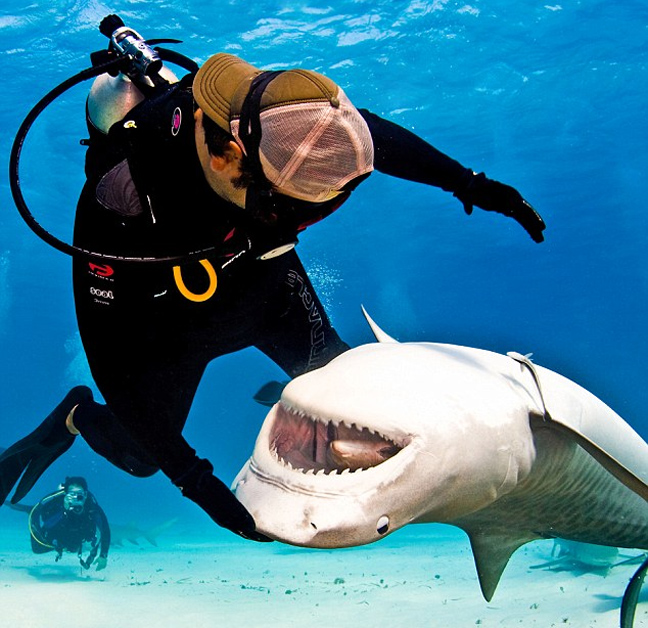 Πολύ κοντά σε μια ομάδα από τους πιο επικίνδυνους καρχαρίες για τον άνθρωπο βρέθηκε ο δύτης Eli Martinez. Το κύριο χαρακτηριστικό του καρχαρία-τίγρη είναι οι σκούρες ραβδώσεις στο σώμα του, οι οποίες μοιάζουν με το μοτίβο της τίγρης, και εξασθενούν όσο ο καρχαρίας μεγαλώνει.