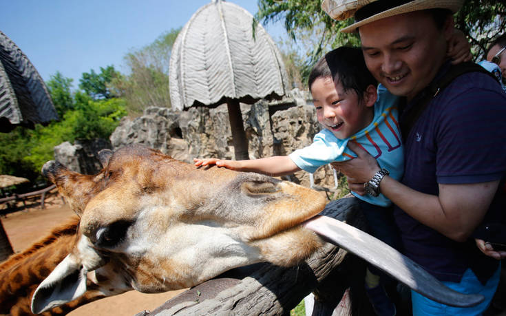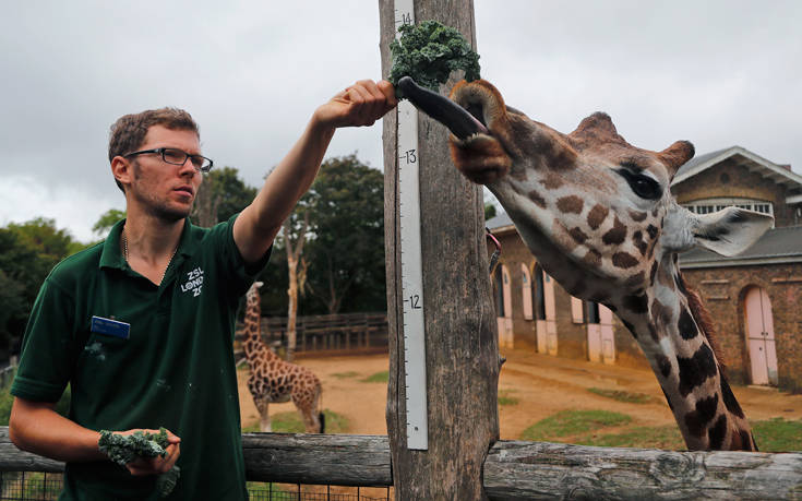 Εξίσου ιδιαίτερη είναι όμως και αυτή η μπλε-μοβ γλώσσα της, που φτάνει ακόμα και στο μισό μέτρο. Γιατί παρά το τεράστιο μήκος του λαιμού της, κάποιες φορές τα πεντανόστιμα φύλλα ακακίας που τόσο αγαπά φυτρώνουν ακόμα ψηλότερα και από το κεφάλι της, κι έτσι το μισό αυτό μέτρο αποδεικνύεται εδώ χρησιμότατο.