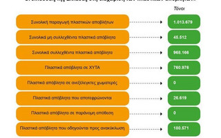 -Το 43% όλων των θαλάσσιων απορριμμάτων που ρυπαίνουν τους ωκεανούς αποτελείται από μόλις 10 είδη πλαστικών αντικειμένων μιας χρήσης. Η ποσότητα αυτή θα μπορούσε να γεμίσει 38.500 απορριμματοφόρα